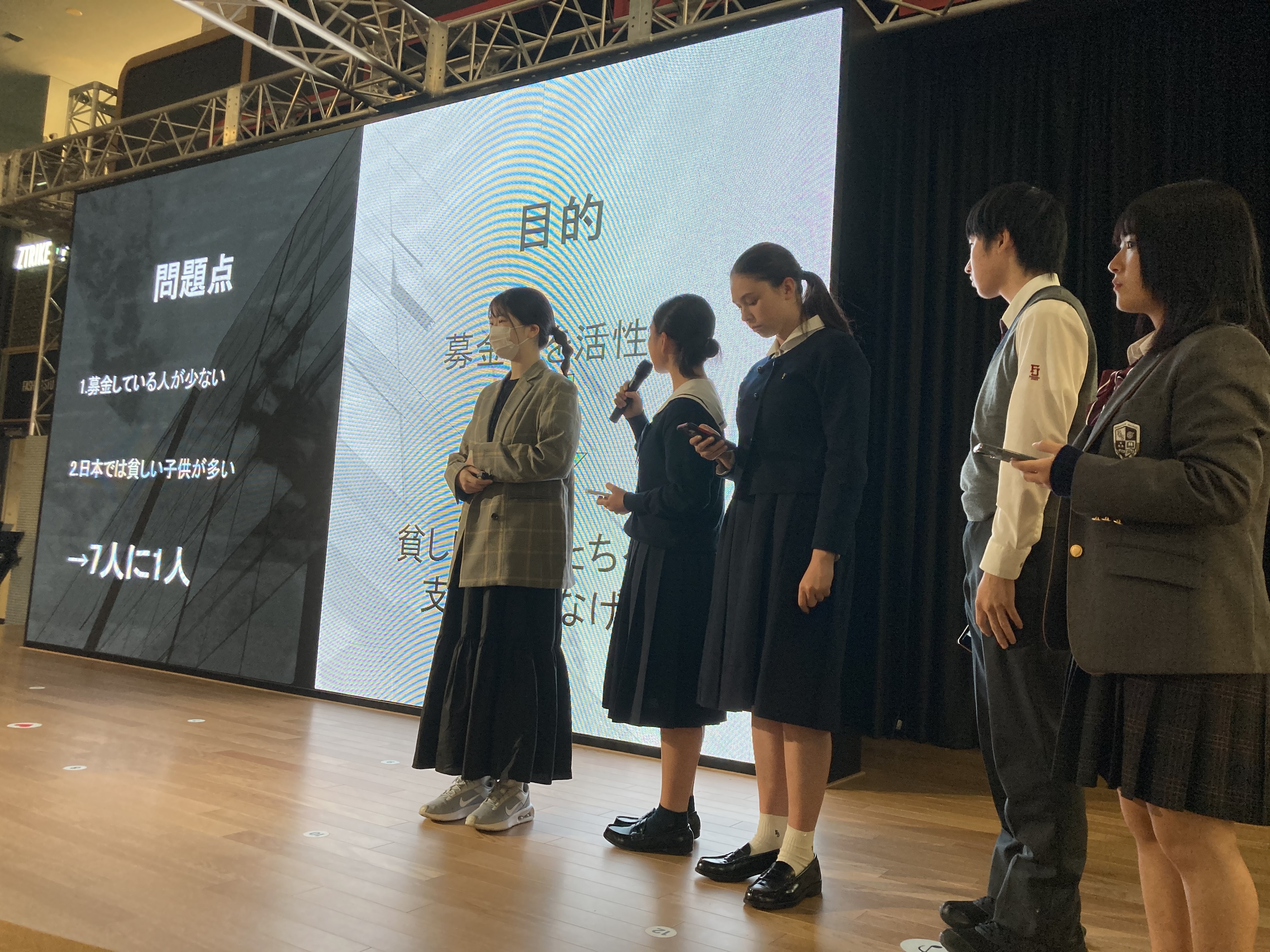 ふだん国際交流の機会がない中高生のために、同年代の留学生と英語で交流できるイベントの開さいをき画しました。けい続して参加してもらうために、入場料を割引するなど、いろいろなイベントに参加したくなる仕組みも考えました。参加者を増やすために中高生がしはらいやすい料金設定とし、イベントに出展する各店ぽからの設置料も加えて収益を得ます。
