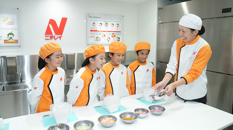 冷凍食品の開発の仕事を行います。自分で食材の組み合わせを考え、スノードライを使って温かくおいしい状態から、急速で凍結する体験ができます。作った冷凍食品は、解凍した後、自分で試食することができます。