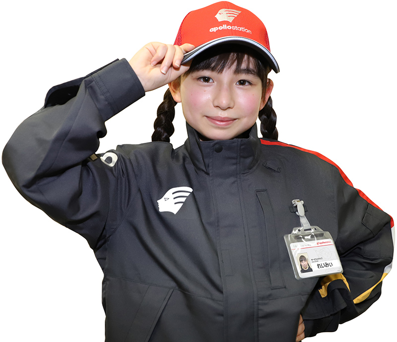 出光のガソリンスタンド「アポロステーション」と同じデザインに変わります。ユニフォームに身に付ける「スタッフ証」も、体験後に持ち帰ることができます。ぜひこの機会に、サービススタッフの仕事にチャレンジしてみましょう。