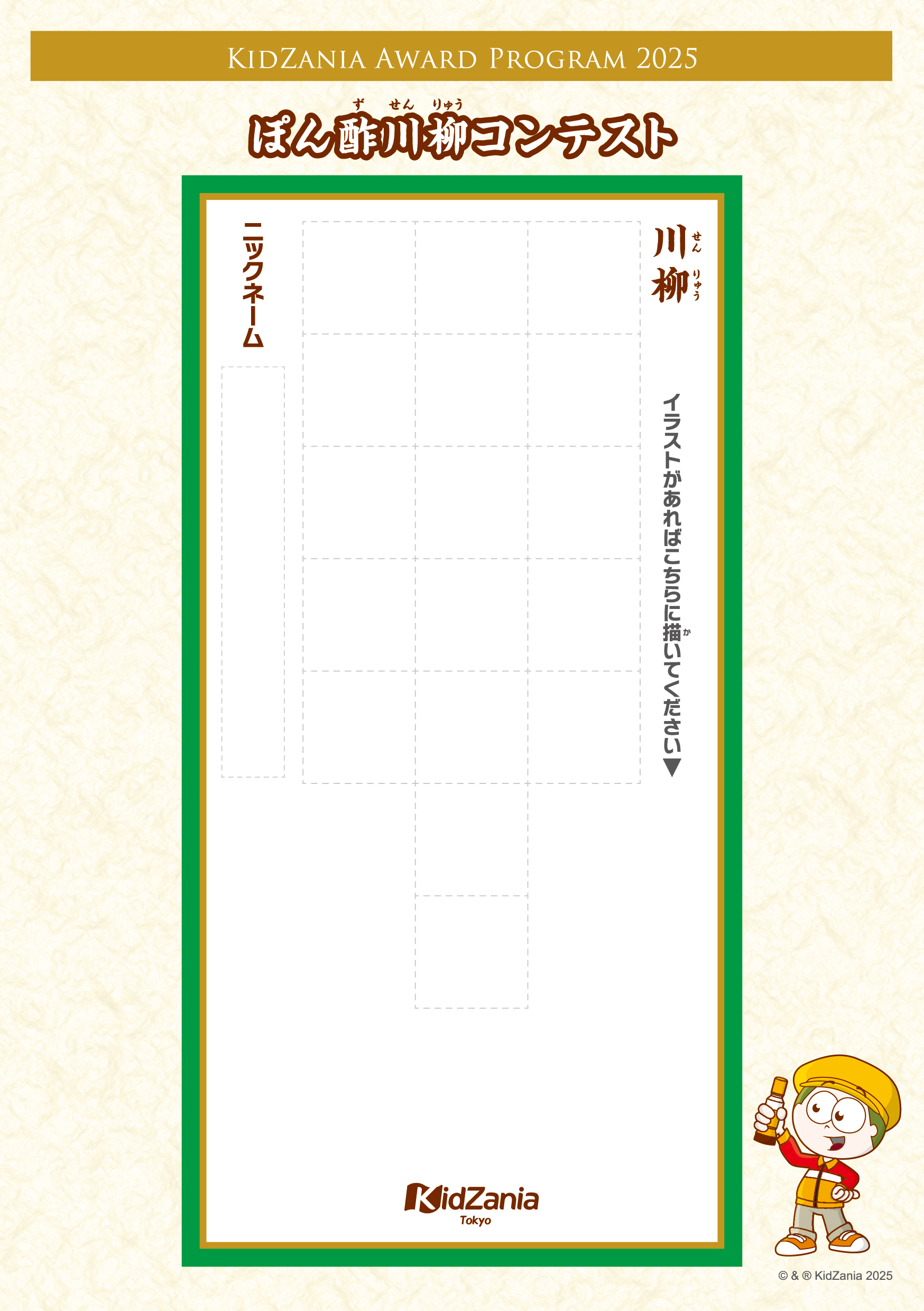 ②本アワードプログラム応募期間内に、専用用紙もしくはお好きな紙に川柳を書いて撮影し、「#味ぽん川柳コンテスト」を付けてキッザニア東京公式X該当の投稿を引用リポストして頂いていること