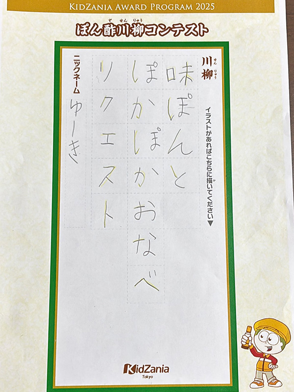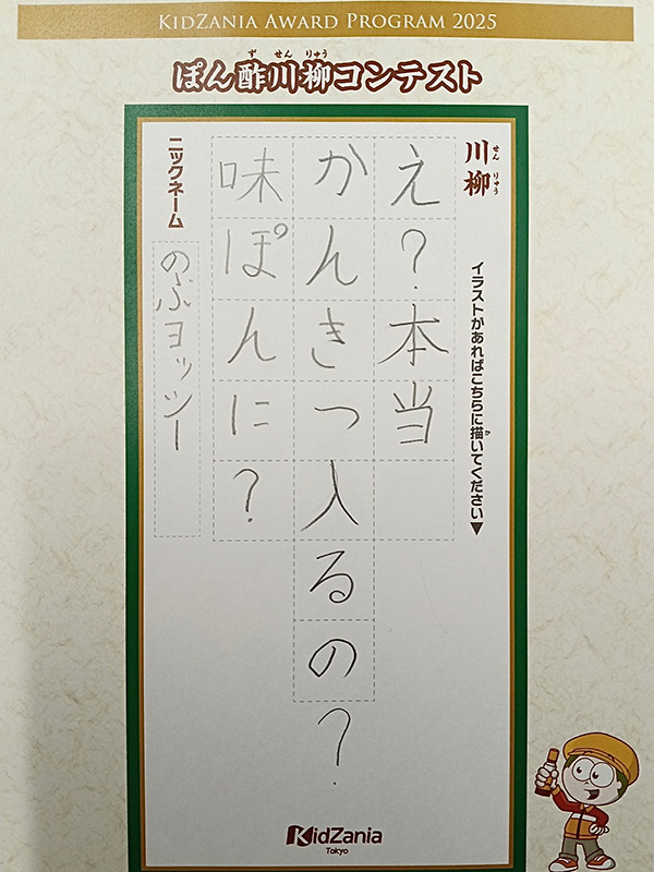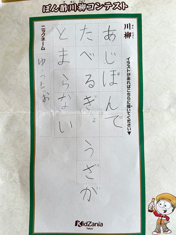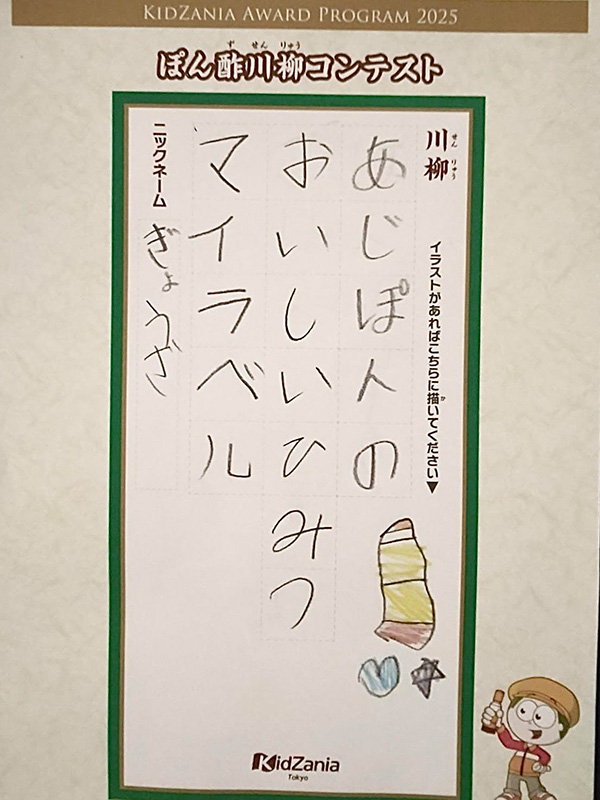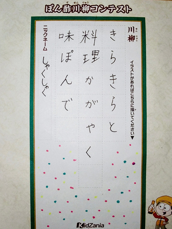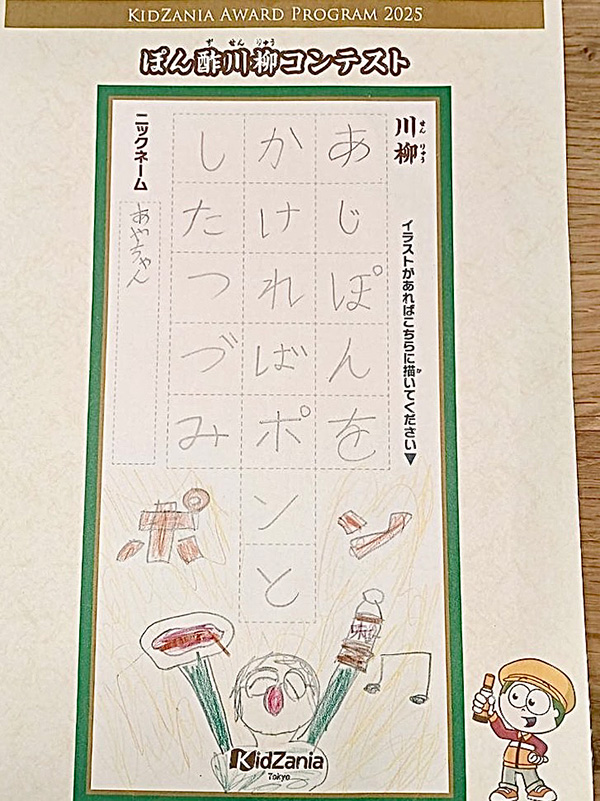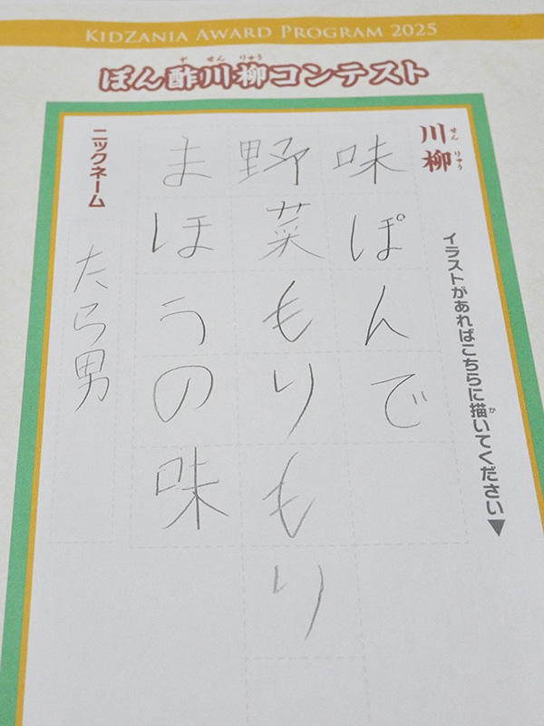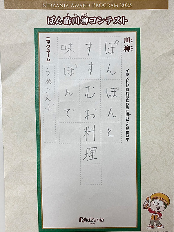 「ぽん酢川柳コンテスト」では、11月10日 の「味ぽん🄬の日」にちなんで、味ぽん🄬の思い出やエピソードを表現した川柳を募集しました。 思いが込められた作品を多数ご応募いただき、ありがとうございました。